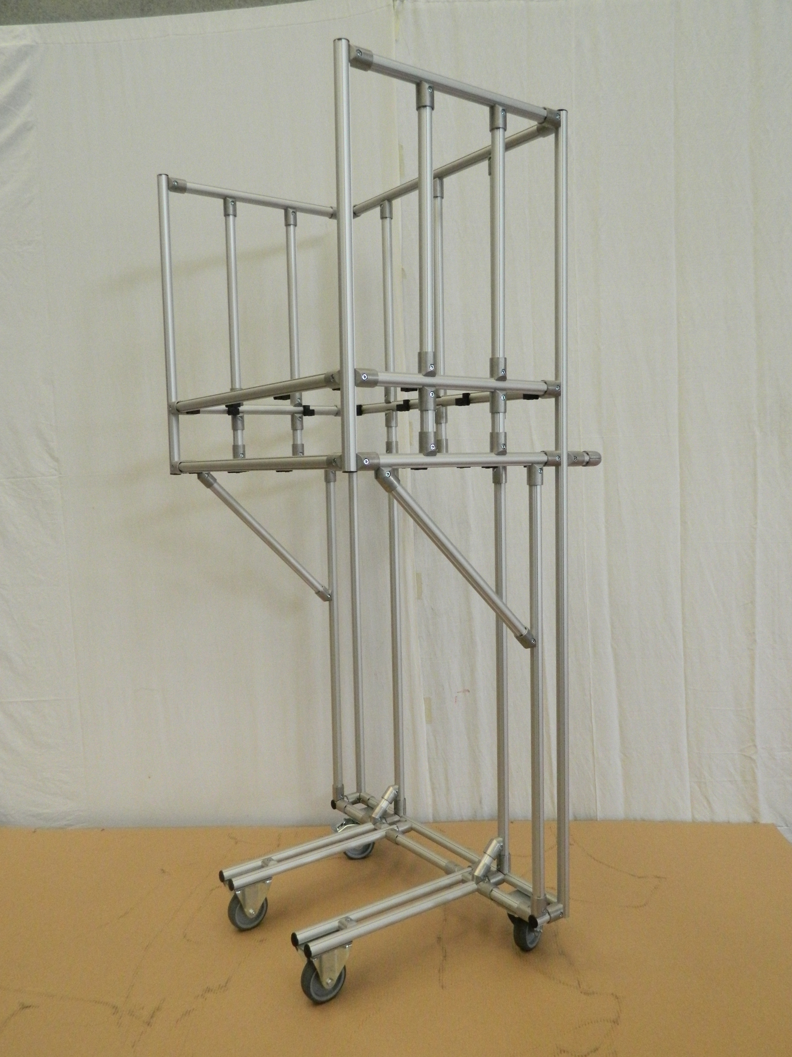 Composto da un robusto telaio in scatolato di acciaio saldato e verniciato che ingaggia i piedini dei contenitori con i propri braccetti orizzontali.