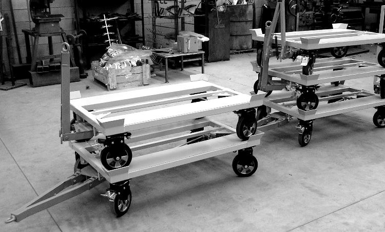 Le nostre piattaforme sono provviste di quattro ruote con sterzata a volta corretta, permettendo così il traino in corridoi industriali, agganciando uno o più carrelli fra di loro.
